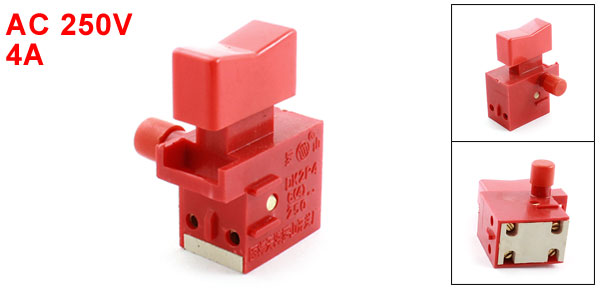Product Name Electric Tool Switch Model No. DK2P4 Action Type DPST(2NO) Action Type Non-Lock Rating AC 250V 4A Screw Terminal 4 Size 3.3 x 3 x 4.3cm/1.3" x 1.2" x 1.6" (L*W*H) Material Plastic Color Red Weight 19g Package 1 x Electric Tool Switch - Reviews