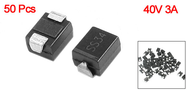Product Name Schottky Diode Model SS34 Package Type DO-214AA Max Repetitive Peak Reverse Voltage 40V Max Average Forward Rectified Current 3A Size 5.5 x 3.7 x 3mm / 0.22" x 0.15" x 0.12" (L*W*T) Color Silver Tone, Black Weight 10g Package Content 50 (±2%) x Schottky Diode - Reviews