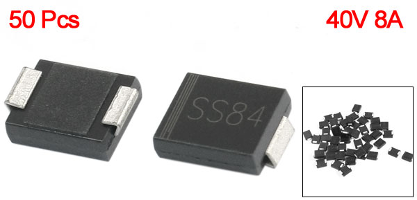 Product Name Schottky Diode Model SS84-C Package Type DO-214AB Max Repetitive Peak Reverse Voltage 40V Max Average Forward Rectified Current 8A Size 7.5 x 5.7 x 2.4mm / 0.3" x 0.23" x 0.09" (L*W*T) Color Silver Tone, Black Weight 15g Package Content 50 (±2%) x Schottky Diode - Reviews