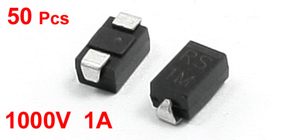 Product Name Fast Recovery Rectifier Diode Model RS1M Package Type DO-214AC (SMA) Max Repetitive Peak Reverse Voltage 1000V Max Average Forward Rectified Current 1A Size 5 x 2.5 x 2.2mm / 0.2" x 0.1" x 0.087" (L*W*T) Color Silver Tone, Black Weight 10g Package Content 50 (±2%) x Fast Recovery Rectifier Diode - Reviews