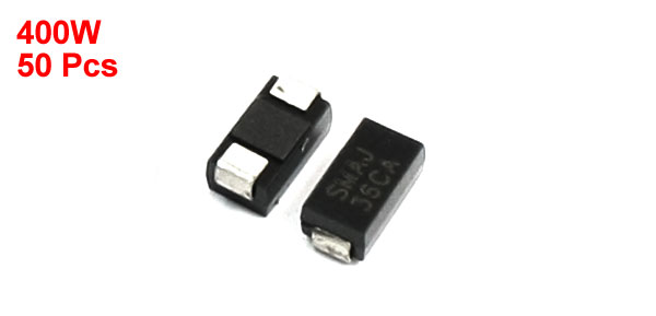 Product Name Transient Suppression Diode Model SMBJ36CA Package Type DO-214AC (SMA) Power 400W Size 5 x 2.5 x 2.2mm / 0.2" x 0.1" x 0.087" (L*W*T) Color Silver Tone, Black Weight 10g Package Content 50 (±2%) x Transient Suppression Diode - Reviews