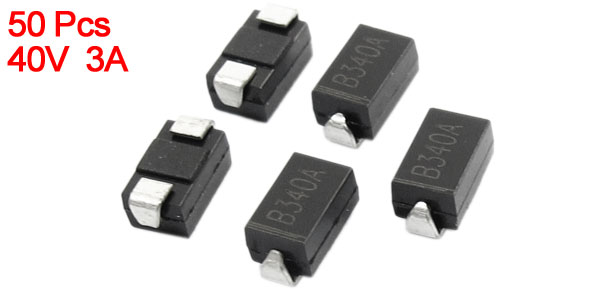 Product Name Schottky Diode Model B340 Package Type DO-214AC Max Repetitive Peak Reverse Voltage 40V Max Average Forward Rectified Current 3A Size 5 x 2.5 x 2.2mm / 0.2" x 0.1" x 0.087" (L*W*T) Color Silver Tone, Black Weight 6g Package Content 50 (±2%) x Schottky Diode - Reviews