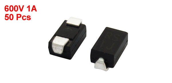 Product Name Fast Recovery Rectifier Diode Model RS1J Package Type DO-214AC (SMA) Max Repetitive Peak Reverse Voltage 600V Max Average Forward Rectified Current 1A Size 5 x 2.5 x 2.2mm / 0.2" x 0.1" x 0.087" (L*W*T) Color Silver Tone, Black Weight 10g Package Content 50 (±2%) x Fast Recovery Rectifier Diode - Reviews