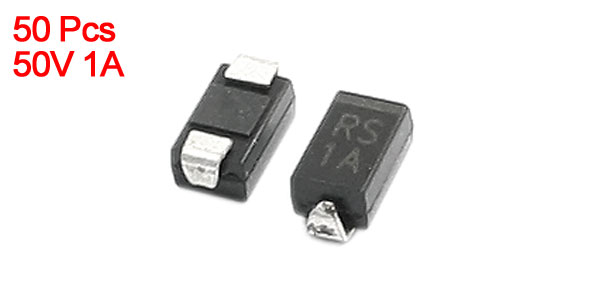 Product Name Fast Recovery Rectifier Diode Model RS1A Package Type DO-214AC (SMA) Max Repetitive Peak Reverse Voltage 50V Max Average Forward Rectified Current 1A Size 5 x 2.5 x 2.2mm / 0.2" x 0.1" x 0.087" (L*W*T) Color Silver Tone, Black Weight 10g Package Content 50 (±2%) x Fast Recovery Rectifier Diode - Reviews