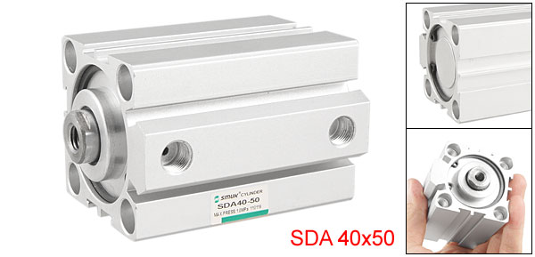 Product Name Thin Air Cylinder Model No. SDA 40x50 Motion Type Double Action Bore 40mm Stroke 50mm Max Working Pressure 1.0Mpa Ensured Pressure Resistance 10.2kgf/cm2 Piston Rod External Diameter 16.5mm/ 7/8" Inlet / Outlet Thread Diameter 12.5mm/ 1/2" Mounting Thread Diameter 6.5mm/ 1/4" Working Medium Pass Filtered & Lubricator Compress Air Main Material Aluminum Alloy Color Silver Tone Size 59 x 52 x 83mm/ 2.3" x 2" x 3.3" (L*W*H) Net Weight 415g Package Content 1 x Thin Air Cylinder - Reviews