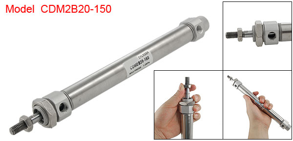 Product Name Air Cylinder Model CDM2B20-150 Action Type Double Action Working Fluid Air Bore 20mm / 25/32" Stroke 150mm / 5 29/32" Max.Press 1.0Mpa Screwed Rod Diameter 8mm / 0.31" Screwed End Diameter 19.6mm / 0.77" Port Diameter 8.4mm / 0.33" Overall Size 26.5 x 2.4cm/10.4" x 0.94"(L*Max.W) Material Aluminum Alloy Color Silver Tone Weight 252g Package Content 1 x Air Cylinder - Reviews
