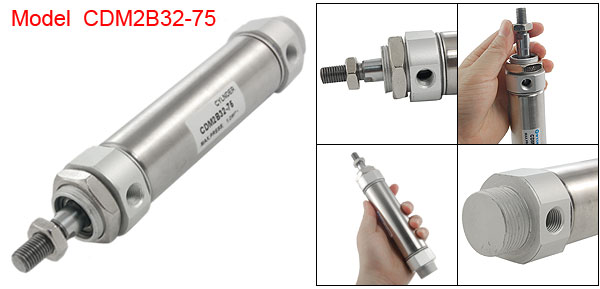 Product Name Air Cylinder Model CDM2B32-75 Action Type Double Action Working Fluid Air Bore 32mm / 5/16" Stroke 75mm / 2 61/64" Max.Press 1.0Mpa Screwed Rod Diameter 9.8mm / 0.38" Screwed End Diameter 25.5mm / 1" Port Diameter 8.4mm / 0.33" Overall Size 19.5 x 3.44cm/7.7" x 1.35"(L*Max.W) Material Aluminum Alloy Color Silver Tone Weight 376g Package Content 1 x Mini Air Cylinder - Reviews
