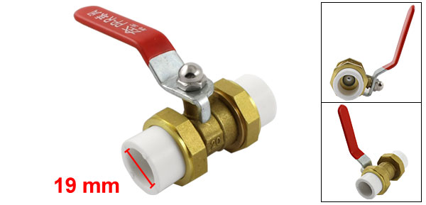 Product Name Ball Valve Type Full Port Handle Size 98 x 15 mm / 3.9" x 0.59" (L*W) Body Size 72 x 33 mm / 2.8" x 1.3" (L*W) Hole Inner Dia. 19 mm / 0.75" Material Brass, PPR, Metal, Soft Plastic Color Gold Tone, Red, White Net Weight 143g Package Content 1 x Brass Ball Valve - Reviews