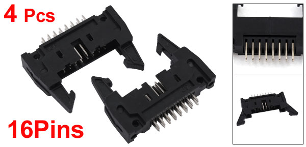 Double Rows 2.54mm 16Pins Lock Type Straight IDC Pin Headers Connector 4Pcs