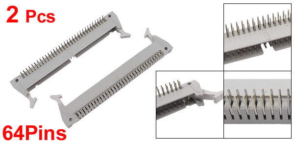 Double Rows 2.54mm 64Pins Lock Type Right Angle IDC Pin Headers Connector 2Pcs