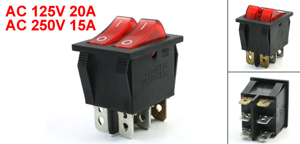 Product Name Rocker Switch Poles Dual SPDT(ON/OFF) Terminals 6 Pin Rating Voltage AC 125V 20A