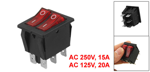Double SPST 6 Pins On/Off Illuminated Rocker Switch AC 15A/250V 20A/125V