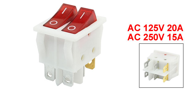 Product Name Rocker Switch Poles Double SPST(On-Off) Terminals 6 Pin Rating Voltage AC 125V 20A