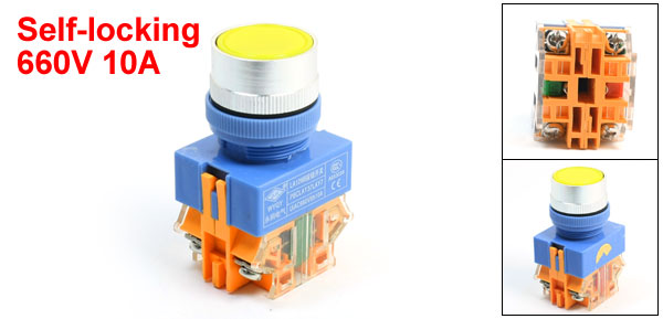 Item Name Push Button Switch Contact Type Self-locking; DPST Ui 660V Ith 10A Button Color Yellow Mounting Thread Diameter 22mm / 0.87" Button Cap Dia 24mm /0.28" Terminals Mounted Quanity 4 Overall Size 6.4 x 3.7 x 3cm/2.5" x 1.5" x 1.2"(L*W*T) Material Plastic, Electronic Parts Weight 42g Package Content 1 Pcs x Push Button Switch - Reviews