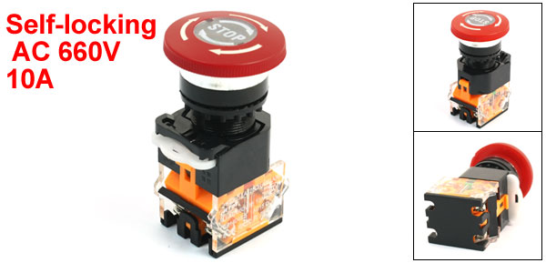 DPST Locking Emergency Stop Mushroom Head Control Pushbutton Switch AC 660V 10A