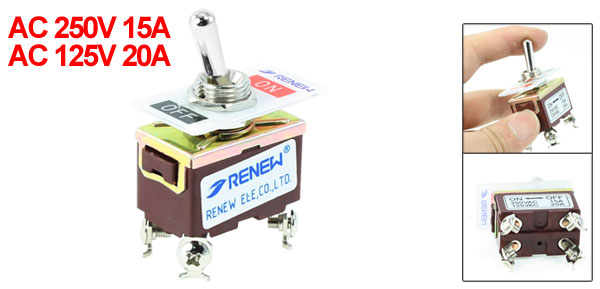 DetailsDPST ON-OFF 2 Position 4 Screw Terminals Toggle Switch AC 15A/250V 20A/125V  Product Name Toggle Switch Type DPST (ON/OFF) Position 4 Voltage Current AC 250V 15A AC 125V 20A Mounting Thread Diamter 12mm / 0.5" Main Body Size 3.1 x 1.9 x 2cm/ 1.2" x 0.7" x 0.8" (L*W*H) Overall Height 55mm / 2.2" Material Metal, Plastic Net Weight 34g Package Content 1 x Toggle Switch