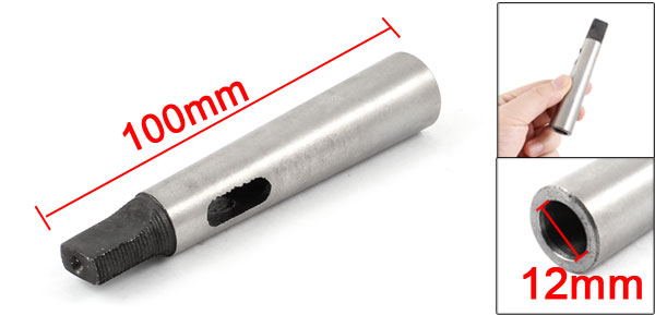 Product Name Reducing Drill Sleeve Type MT2 to MT1 Bore Diameter 12mm/ 0.4" External Max.Diameter 18mm/ 0.7" Tang Size 13 x 7mm/ 0.5" x 0.2"(L*W*T) Total Length 100mm/ 3.9" Material Metal Color Silver Tone Weight 86g Package Content 1 x Reducing Drill Sleeve - Reviews