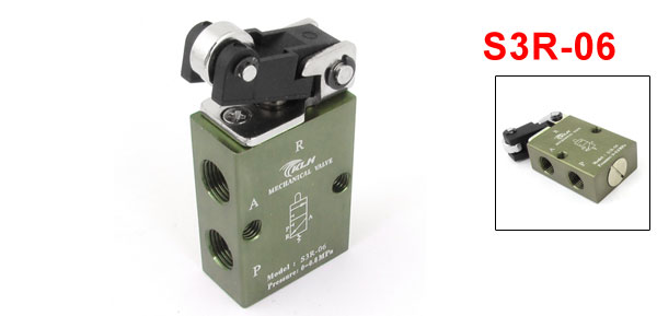 Product Name Pneumatic Mechanical Valve Model S3R-06 Operation Type Direct Acting Contact Type Double Roll Working Medium Clear Air (40µm filteration) Port Type 3 Position Type 2 Pipe Thread Diameter 1" PT Operating Temperature Range -5 ~ 60°C Working Pressure Range 0 ~ 0.8MPa Total Size(Approx) 3 x 1.6 x 6.2cm / 1.2" x 0.6" x 2.4" (L*W*H) Main Color As Picture Shown Material Alloy Net Weight 66g Package Content 1 x Mechanical Valve - Reviews