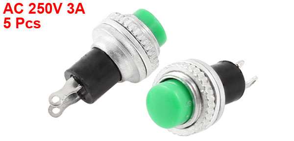 DS-314 SPST Green Momentary Push Button Switch AC 250V 3A 2 Pins 5 Pcs