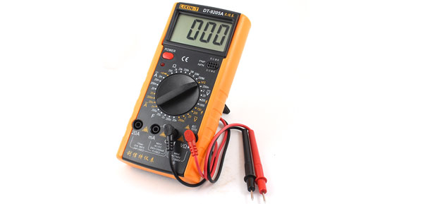 DetailsDT-9205A AC/DC Voltmeter Ammeter Resistance Digital Multitester Yellow Black  Product Name Multitester Model DT-9205A DC Voltage 200mV-2V-20V-200V-1000V AC Voltage 200mV-2V-20V-200V-700V DC Current 2mA-20mA-200mA-20A AC Current 2mA-20mA-200mA-20A Resistance(ohm) 200-2k-20k-200k- 2M-20M-200M Capacitance 2nF-20nF-200nF-2uF-20uF-200uF-2000uF Temperature -20 to 1000C Frequency 2kHz-20kHz Power Supply 1 x 9V Battery(NEDA 1604, 6F22, etc)(Battery Not included) Main Color Black, Yellow Mateiral Plastic, Electronic Parts Cable Length 90cm/ 35" Size 18 x 8.5 x 3.5cm/ 7.3" x 3.5" x 2" (L*W*T) Net Weight 332g Package Content 1 x Multitester 1 x Pair Test Probe Leads