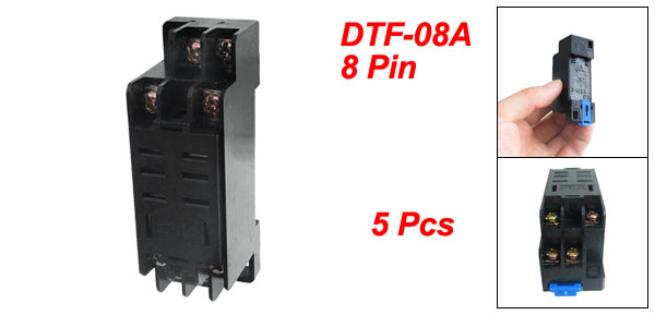DTF-08A 8 Pin Power Relay Base Socket DIN Rail Mount 5 Pcs