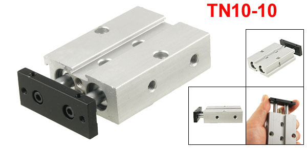 Product Name Air Cylinder Model TN10-10 Action Double Action Rod Type Double Rod Bore 10mm Stroke 10mm Rod Diameter 6mm Thread Hole Diameter 4mm Mount Hole Dia. 5mm Max Press 1.0Mpa Overall Size(Approx) 71 x 42 x 17mm/ 2.8" x 1.7" x 0.67" (L*W*T) Material Aluminum Alloy Weight 122g Package Content 1 x Air Cylinder - Reviews