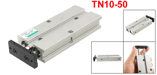 Product Name Air Cylinder Model TN10-50 Action Double Action Rod Type Double Rod Bore 10mm Stroke 50mm Rod Diameter 6mm Thread Hole Diameter 4mm Mount Hole Dia. 5mm Max Press 1.0Mpa Overall Size(Approx) 110 x 42 x 17mm/ 4.3" x 1.7" x 0.67" (L*W*T) Material Aluminum Alloy Weight 192g Package Content 1 x Air Cylinder - Reviews