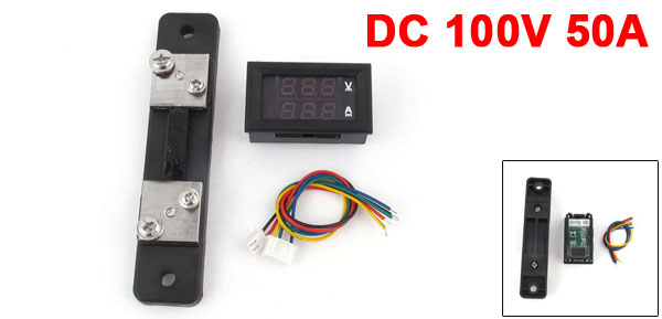 Dual LED Digital Voltmeter Ammeter Ampere Volt Meter + Current Shunt DC 100V 50A