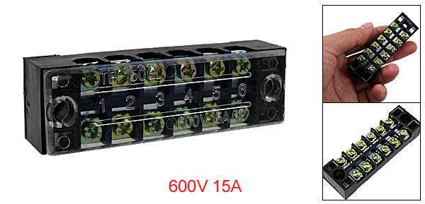 Dual Row 6 Positions Screw Terminal Barrier Block 600V 15A
