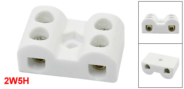 Product Name Ceramic Terminal Block Type 2W5H Rating Current 15A Rating Voltage 110-600V Max. Withstand Temperature 500°C Total Size 4 x 2.3 x 1.7cm/1.6" x 0.9" x 0.67"(L*W*T) Screw Mounting Hole Dia 5mm/0.2" Materials Ceramic, Copper Main Color White Net Weight 27g Package Content 1 x Ceramic Terminal Block - Reviews