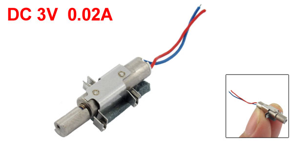 DetailsDual Wires 3V 10000RPM 0.02A Magnet Mini Vibration Motor  Product Name Vibration Motor Voltage DC 3V Current 0.02A Speed 10000RPM Shaft Size 5 x 4 x 3mm/ 0.2" x 0.157" x 0.12"(L*W*T) Gearbox Size 14 x 4mm/ 0.55" x 0.157"(L*W) Cable Length 2cm/ 0.787" Net Weight 1g Package Content 1 x Mini Vibration Motor