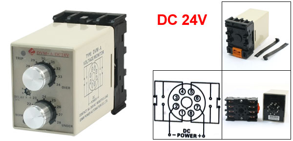 Product Name DC Voltage Monitor Relay Model DVM-A Rated Voltage DC 24V Operation Indicator Trip-normal Tow Indicator Lamp Output Contact AC 250V/2.5A, DC 30V/2A Under Voltage Setting 20-28V Over Voltage Setting 26-34V Delay Time 0-15.0s Adjustable Power Consumption <= 2W Ambient Temperature -10C to +55C Ambient Humidity 45%-85%RH Rail Mount Size 35mm Relay Size 57.5 x 40 x 50mm/2.3" x 1.6" x 2.0"(L*W*H) Base Size 57.5 x 40 x 17mm/2.3" x 1.6" x 0.67"(L*W*H) Weight 159g Package Content 1 x DC Voltage Monitor Relay, 1 x Mounting Base - Reviews