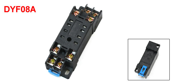Product Name Relay Socket Base Model DYF08A Fit for HH52P, MY2NJ, H3Y-2, ST6P Pin Number 8 Fixing Hole Size 6 x 4mm/ 0.24" x 0.16" (L*W) Installing Rail Size Standard 35mm Mounting Rail Total Size (Approx.) 71 x 23 x 30mm/ 2.8" x 0.9" x 1.2"(L*W*T) Main Color Black Material Plastic, Metal Weight 31g Package Content 1 x Relay Socket Base - Reviews