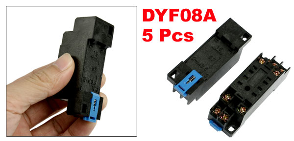 Product Name Relay Socket Model DYF08A Terminal Number 8 Total Size (Approx.) 68 x 22 x 29mm / 2.6" x 0.8" x 1.1" (L*W*T) Main Color Black Weight 147g Package Content 5 x Relay Socket - Reviews