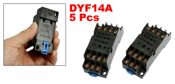 DYF14A DIN Rail Mount 14 Terminals Relay Socket Base 5 Pcs