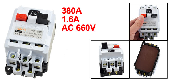 Product Name Circuit Breaker Model Number DZ162-16(M611) Rated Circuit Breaking Capacity 380A Rated Current 1.6A Rated Voltage AC 660V Instantuneous Release Type 1NO 1NC Number of Poles 3 Overall Size (Approx.) 10.8 x 6 x 7.2cm/ 4.25" x 2.4" x 2.8"(L*W*H) Material Plastic, Electric Components Color White Net Weight 285g Package Content 1 x Circuit Breaker - Reviews