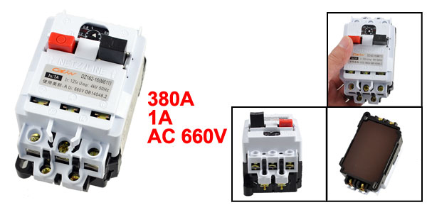 Product Name Circuit Breaker Model Number DZ162-16(M611) Rated Circuit Breaking Capacity 380A Rated Current 1A Rated Voltage AC 660V Instantuneous Release Type 1NO 1NC Number of Poles 3 Overall Size (Approx.) 10.8 x 6 x 7.3cm/ 4.3" x 2.4" x 2.9"(L*W*H) Material Plastic, Electric Components Color White, Black Net Weight 283g Package Content 1 x Circuit Breaker - Reviews