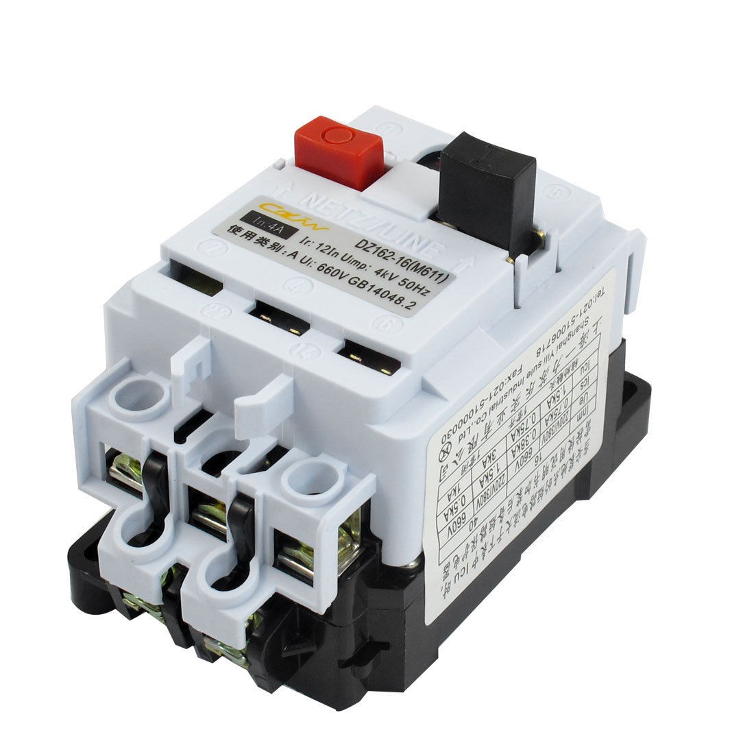 Product Name Circuit Breaker Model Number DZ162-16(M611) Rated Circuit Breaking Capacity 380A Rated Current 4A Rated Voltage AC 660V Instantuneous Release Type 1NO 1NC Number of Poles 3 Overall Size (Approx.) 10.8 x 6 x 7.4cm/ 4.25" x 2.4" x 2.9"(L*W*H) Material Plastic, Electric Components Color White, Black Net Weight 286g Package Content 1 x Circuit Breaker - Reviews