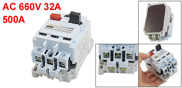 Product Name Circuit Breaker Model Number DZ162-40(M611) Rated Circuit Breaking Capacity 500A Rated Current 32A Rated Voltage AC 660V Instantuneous Release Type 1NO 1NC Number of Poles 3 Overall Size (Approx.) 10.8 x 6 x 7.4cm/ 4.25" x 2.4" x 2.9"(L*W*H) Material Plastic, Electric Components Color White, Black Net Weight 309g Package Content 1 x Circuit Breaker - Reviews