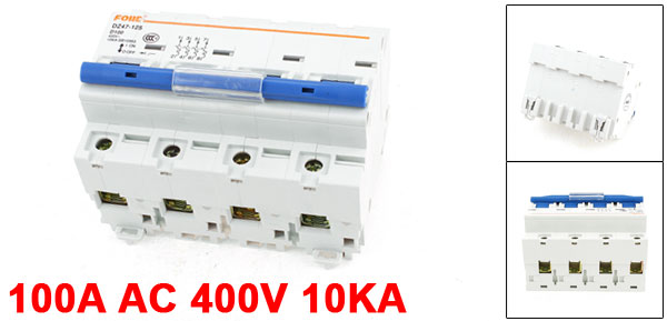 Product Name Circuit Breaker Model DZ47-125 Rated Current 100A Rated Voltage AC 400V Rated Circuit Breaking Capacity 10KA Number of Poles 4 Mount Type 35mm DIN Rail Total Size (Approx.) 107 x 81 x 66mm/ 4.2" x 3.1" x 2.6" (L*W*H) Color White Material Plastic, Electric Components Weight 590g Package Content 1 x Circuit Breaker - Reviews