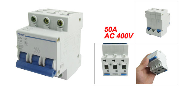 Product Name Circuit Breaker Model DZ47-60 C50 Material Plastic, Electric Components Shell Frame Size Rated Current 60A Rated Circuit Breaking Capacity 4000A Rated Current 50A Rated Voltage AC 400V Number of Poles 2 Total Size (Approx.) 77x65x53mm / 3" x 2.5" x 1.3" (L * W *T) Color White, Blue Weight 300g Package Content 1 x Circuit Breaker - Reviews