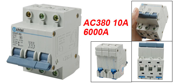 Product Name Miniature Circuit Breaker Model Number DZ47-63 C10 Rated Circuit Breaking Capacity 6000A Rated Current 10A Rated Voltage AC380 Frequency 50Hz Instantuneous Release Type C Type Number of Poles 3 Overall Size (Approx.) 7.7 x 5.3 x 7.5cm/ 3" x 2.1" x 3"(L*W*H) Material Plastic, Electric Components Color As Picture Shown Weight 260g Package Content 1 x Miniature Circuit Breaker - Reviews