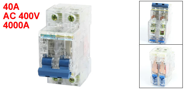 Product Name Circuit Breaker Model DZ47-63 C40 Rated Current 40A Rated Voltage AC 400V Rated Circuit Breaking Capacity 4000A Number of Poles 2 Mount Type 35mm DIN Rail Total Size (Approx.) 77 x 35 x 75mm/ 3.1" x 1.4" x 3" (L*W*H) Material Plastic, Electric Components Weight 150g Package Content 1 x Circuit Breaker - Reviews