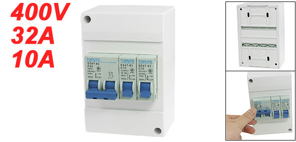 Product Name Circuit Breaker Model DZ47-63 Pole Type 4P=2P32A+1P10A+1P10A Rated Voltage 400V Rated Circuit Breaking Capacity 3000A Rated Current 32A ; 10A Total Size (Approx.) 13 x 8.8 x 8cm / 5.1" x 3.5" x 3.1"(L * W* H) Material Plastic, Electronic Components Color As Picture Shown Weight 425g Package Content 1 x Circuit Breaker - Reviews