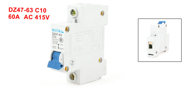 Product Name Miniature Circuit Breaker Model Number DZ47-63 C10 Rated Circuit Breaking Capacity 6000A Rated Current 60A Rated Voltage AC 415V Number of Poles 1 Overall Size (Approx.) 7.7 x 1.8 x 6.5cm/ 3" x 0.7" x 2.6"(L*W*H) Mounting Type 35mm DIN Rail Material Plastic, Electric Components Color As Picture Shown Weight 101g Package Content 1 x Miniature Circuit Breaker - Reviews