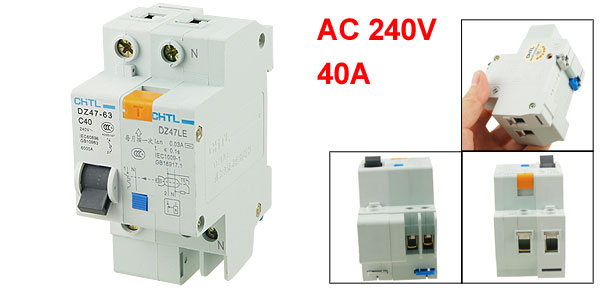 Product Name Earth Leakage Circuit Breaker Model DZ47-63 Rated Voltage AC 240V Rated Current 40A Number of Poles 1 Neutral +N Rated Breaking Capacity 6000A