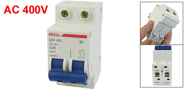 Product Name Miniature Circuit Breaker Model Number DZ47-63 C20 Rated Circuit Breaking Capacity 6000A Rated Voltage AC 400V Rated Current 20 Poles 2 Pole Rail Mounting 35mm DIN Rail Overall Size (Approx) 66 x 35 x 77mm/ 2.6" x 1.37" x 3" (L*W*T ) Material Plastic, Electric Components Color Off White Weight 185g Package Content 1 x Miniature Circuit Breaker - Reviews