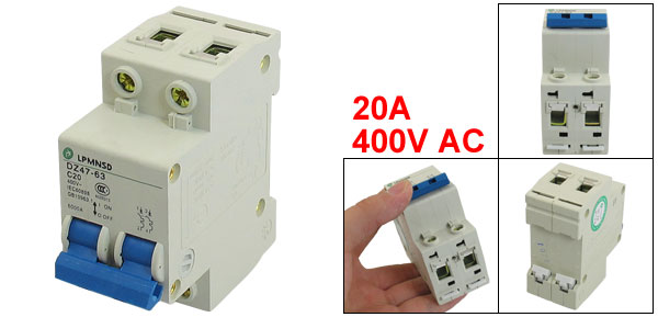 Product Name Circuit Breaker Model Number DZ47-63 C20 Rated Circuit Breaking Capacity 6000A Rated Current 20A Rated Voltage 400VAC Number of Poles 2 Mounting Type DIN Dail Total Size (Approx) 7.4 x 3.6 x 7.9cm/ 2.9" x 1.4" x 3.1" (L*W*H) Material Plastic, Electric Components Color As Picture Shown Weight 155g Package Content 1 x Circuit Breaker - Reviews