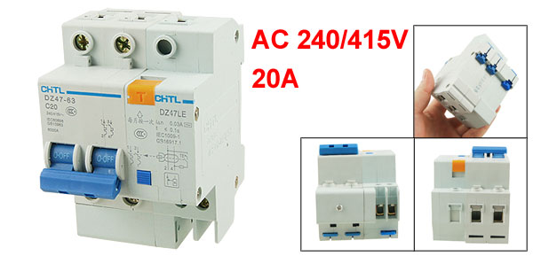 Product Name Earth Leakage Circuit Breaker Model DZ47-63 Rated Voltage AC 240/415V Rated Current 20A Number of Poles 2 Rated Breaking Capacity 6000A Rated Residual Operating Current 0.03A (30mA) Rated Residual Operating Time < 0.1S Mount Type DIN Rail Overall Size 9.3 x 6.5 x 6.2cm/ 3.6" x 2.5" x 2.4" (L*W*H)