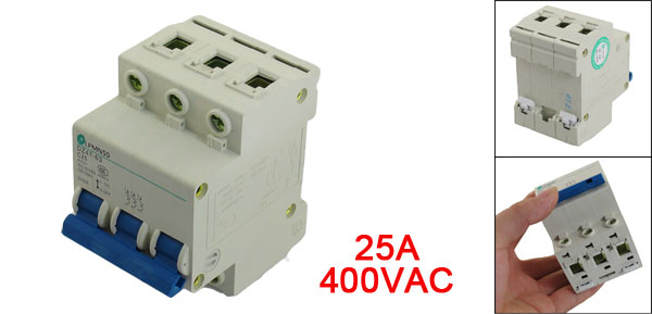 Product Name Circuit Breaker Model Number DZ47-63 C25 Rated Circuit Breaking Capacity 6000A Rated Current 25A Rated Voltage 400VAC Number of Poles 3 Mounting Rail Size 35mm DIN Dail Total Size (Approx) 7.6 x 5.4 x 7.7cm/ 3" x 2.1" x 3" (L*W*H) Material Plastic, Electric Components Color As Picture Shown Weight 233g Package Content 1 x Circuit Breaker - Reviews